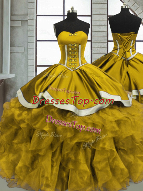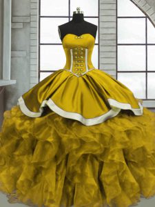 Brown Sweetheart Neckline Beading and Ruffles Vestidos de Quinceanera Sleeveless Lace Up