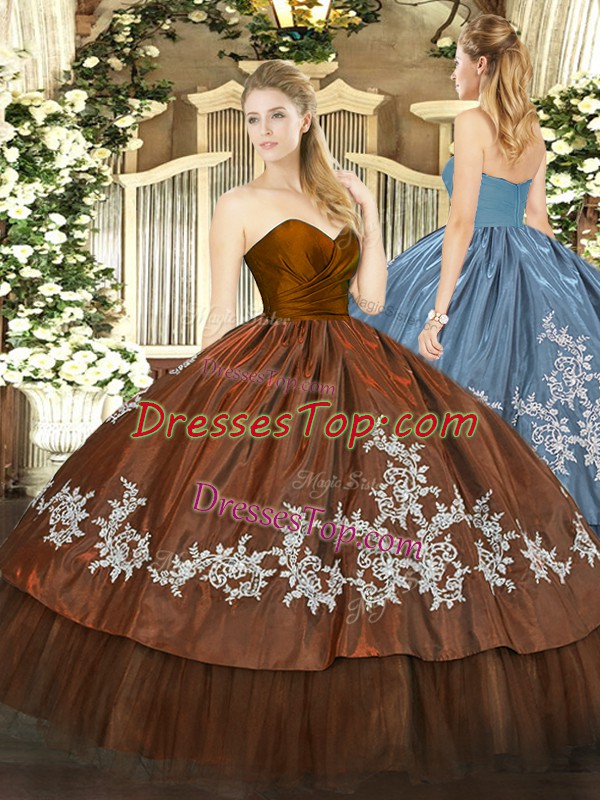 Brown Sweetheart Zipper Embroidery Ball Gown Prom Dress Sleeveless