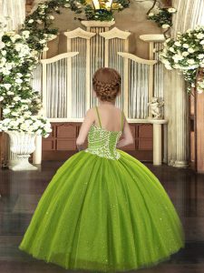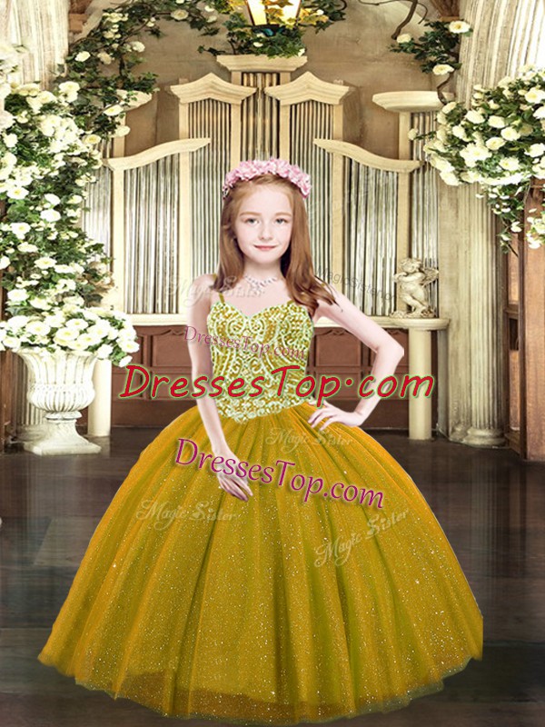 Brown Tulle Lace Up Straps Sleeveless Floor Length Pageant Gowns Beading