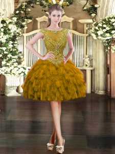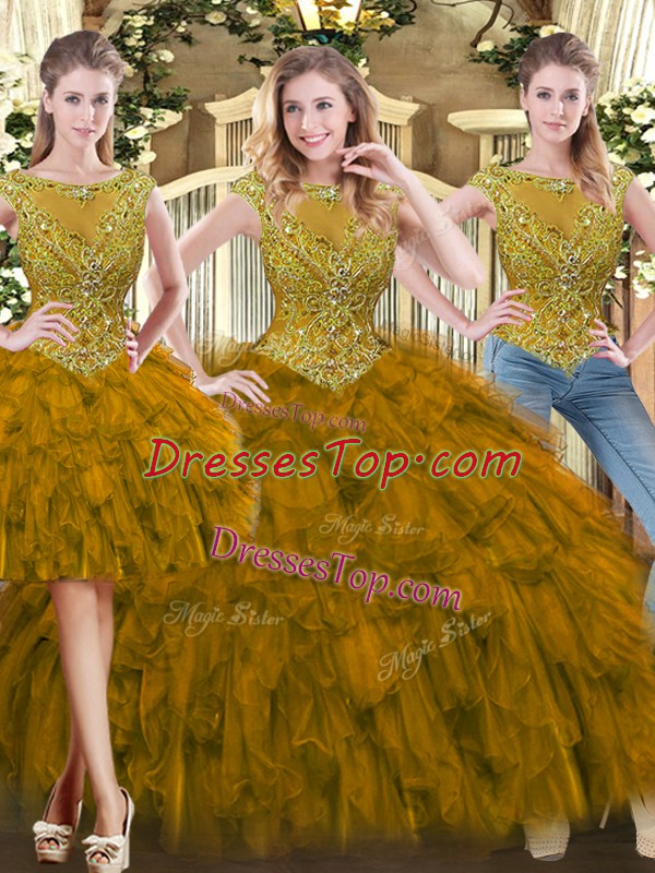 Brown Zipper Quinceanera Gown Beading and Ruffles Sleeveless Floor Length