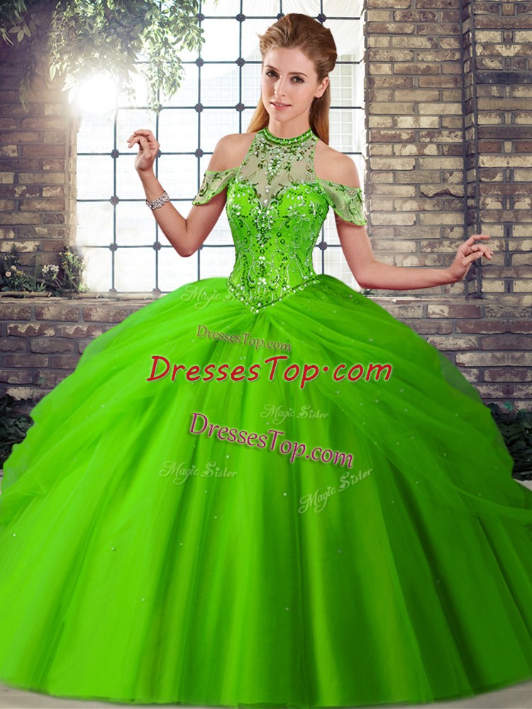 Brush Train Ball Gowns Ball Gown Prom Dress Halter Top Tulle Sleeveless Lace Up