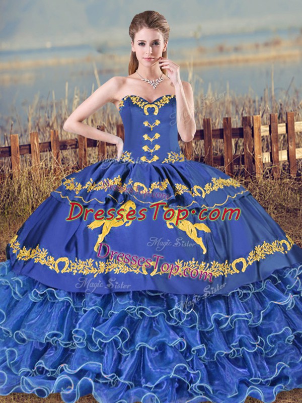 Brush Train Ball Gowns Quinceanera Gowns Blue Sweetheart Organza Sleeveless Lace Up