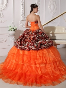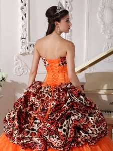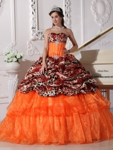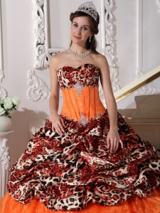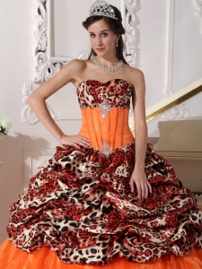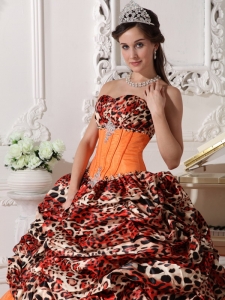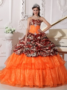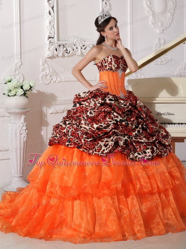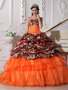 Brush Train Leopard Prints Organza Appliques Quinceanera Dress
