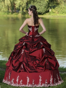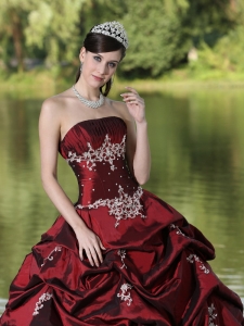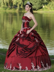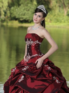 Burgundy Applique Shimmering Quinceanera Dress Pleats