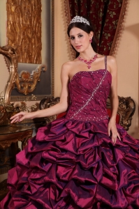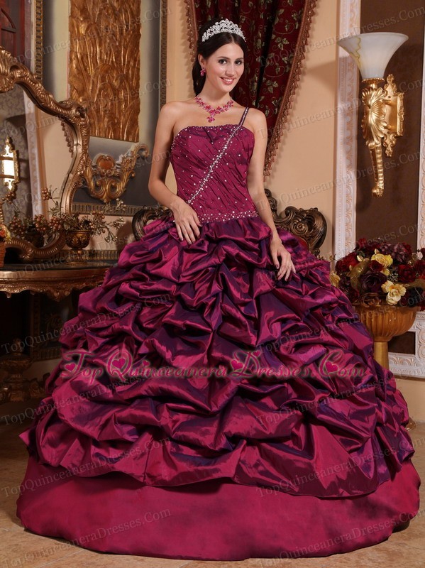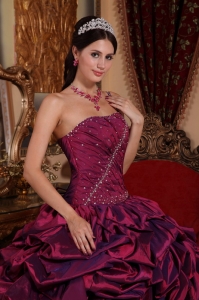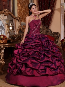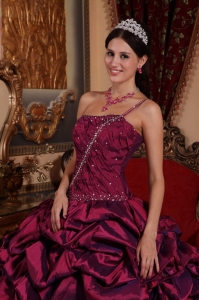 Burgundy One Shoulder Beading Ruched Quinceanera Dress