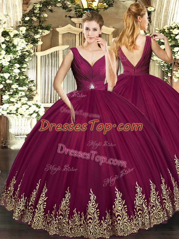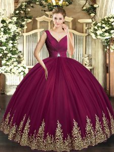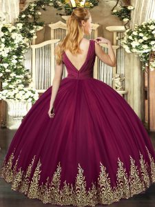 Burgundy Sleeveless Tulle Backless Quince Ball Gowns for Sweet 16 and Quinceanera