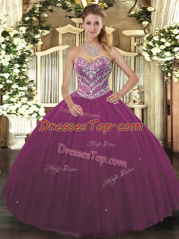 Burgundy Sleeveless Tulle Lace Up Sweet 16 Dress for Military Ball and Sweet 16 and Quinceanera