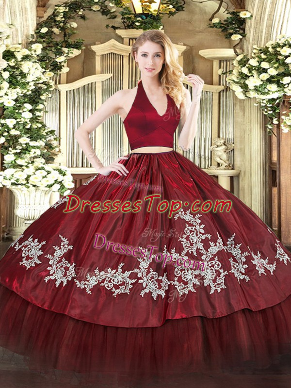 Burgundy Taffeta Zipper Ball Gown Prom Dress Sleeveless Floor Length Appliques