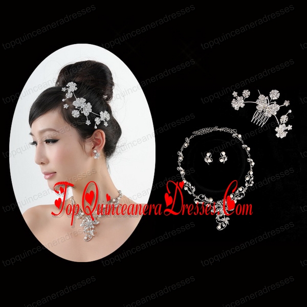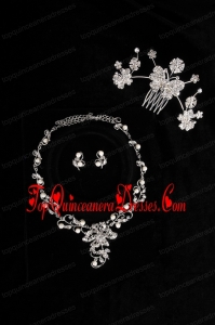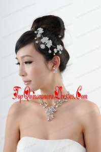 Butterfuly Rhinestone and Pearl Necklace Headpiece Wedding Jewelry Set