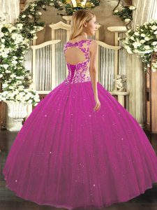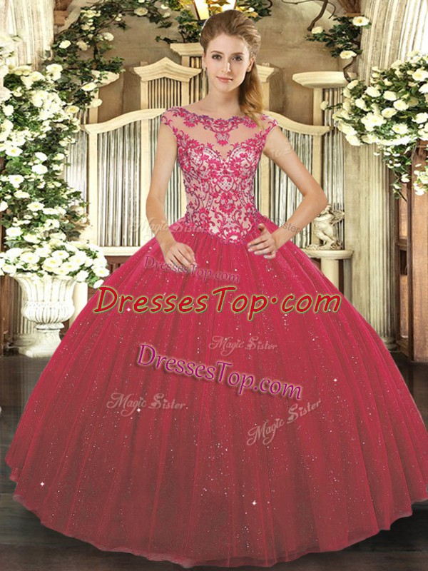 Cap Sleeves Beading and Appliques Lace Up Ball Gown Prom Dress