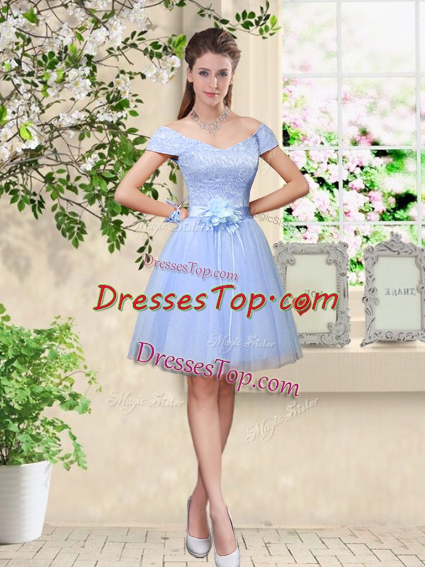 Cap Sleeves Lace and Belt Lace Up Dama Dress