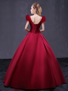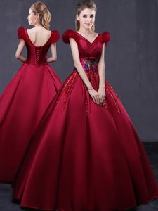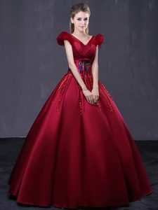 Cap Sleeves Lace Up Floor Length Appliques Quinceanera Dress
