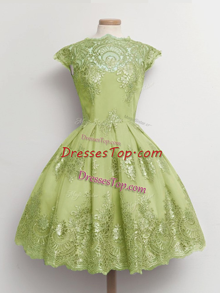 Cap Sleeves Lace Up Knee Length Lace Quinceanera Court of Honor Dress