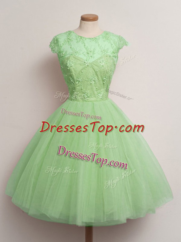 Cap Sleeves Tulle Knee Length Lace Up Quinceanera Court Dresses in with Lace
