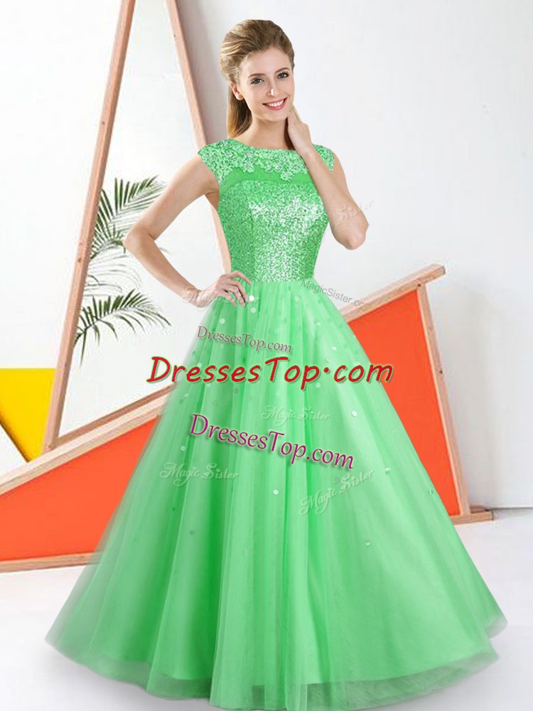 Captivating A-line Vestidos de Damas Green Bateau Tulle Sleeveless Floor Length Backless