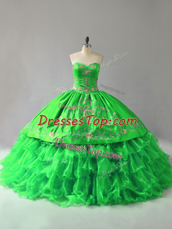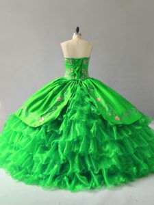 Captivating Ball Gowns Sweetheart Sleeveless Organza Floor Length Lace Up Embroidery and Ruffles Quince Ball Gowns