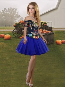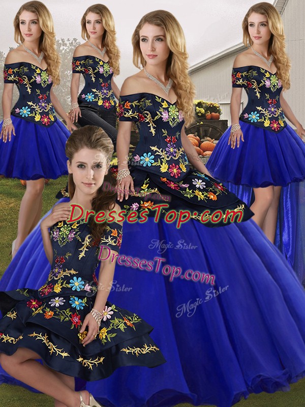 Captivating Embroidery Ball Gown Prom Dress Royal Blue Lace Up Sleeveless Floor Length