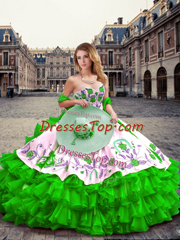 Captivating Floor Length Ball Gowns Sleeveless Green Sweet 16 Dress Lace Up
