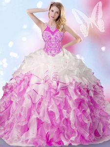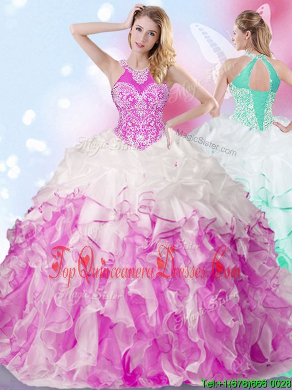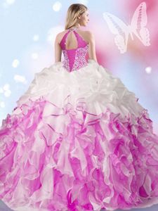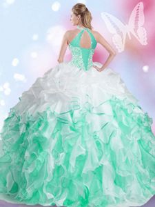 Captivating Halter Top Multi-color Lace Up Sweet 16 Dress Beading and Ruffles and Pick Ups Sleeveless Floor Length