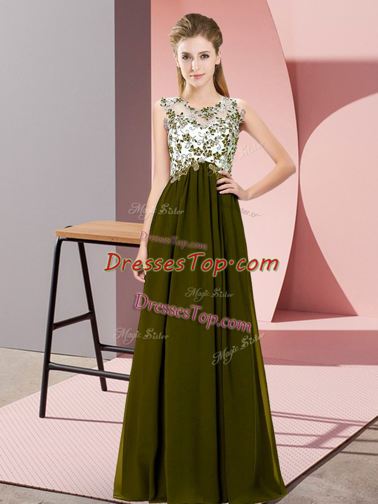 Captivating Olive Green Sleeveless Beading and Appliques Floor Length Quinceanera Court of Honor Dress