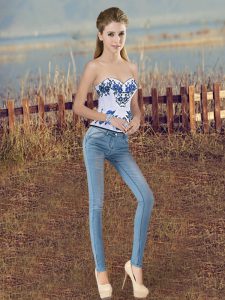 Captivating Royal Blue Sleeveless Embroidery and Bowknot Floor Length Quinceanera Dresses