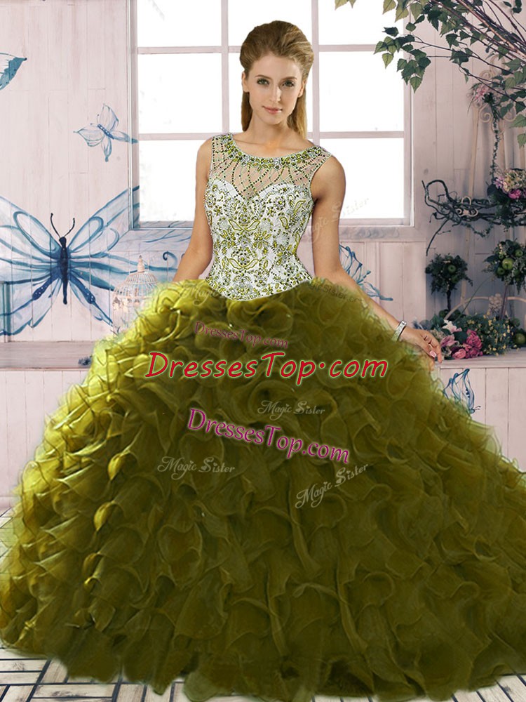 Captivating Scoop Sleeveless Lace Up Sweet 16 Quinceanera Dress Olive Green Organza