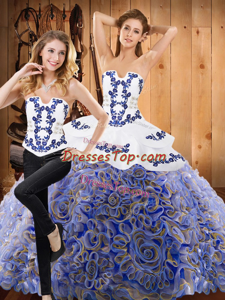 Captivating Sleeveless Brush Train Embroidery Lace Up Quince Ball Gowns