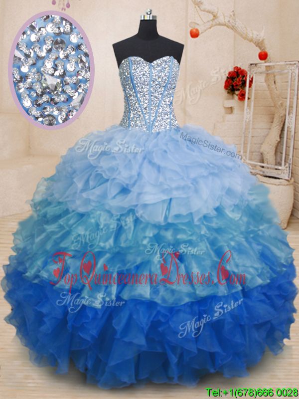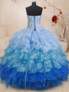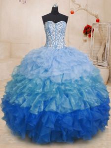 Captivating Sleeveless Lace Up Floor Length Beading and Ruffles and Sequins Sweet 16 Quinceanera Dress