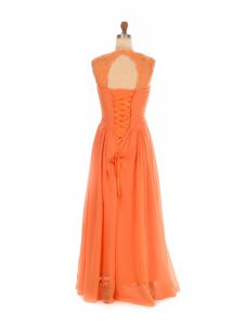 Captivating Sleeveless Lace Up Floor Length Lace Quinceanera Court of Honor Dress