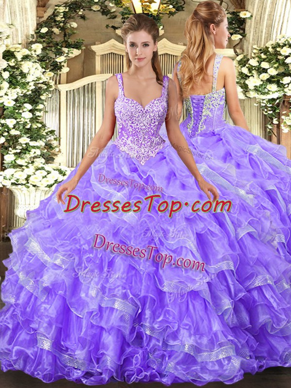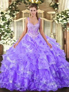 Captivating Straps Sleeveless Organza 15 Quinceanera Dress Beading and Ruffled Layers Lace Up