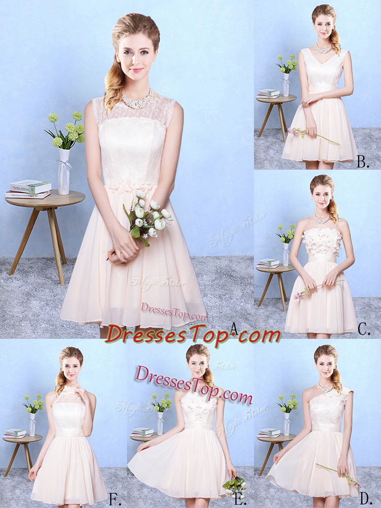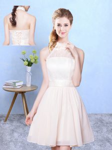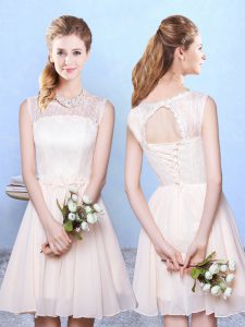 Champagne Empire Lace Quinceanera Dama Dress Lace Up Chiffon Sleeveless Knee Length