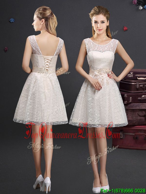 Champagne Lace Up Scoop Appliques Damas Dress Tulle Sleeveless