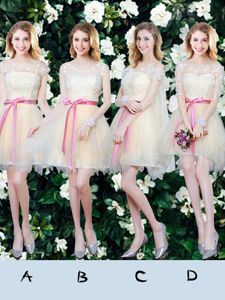 Champagne Scoop Lace Up Lace and Appliques and Ruffles and Bowknot Quinceanera Court of Honor Dress Sleeveless