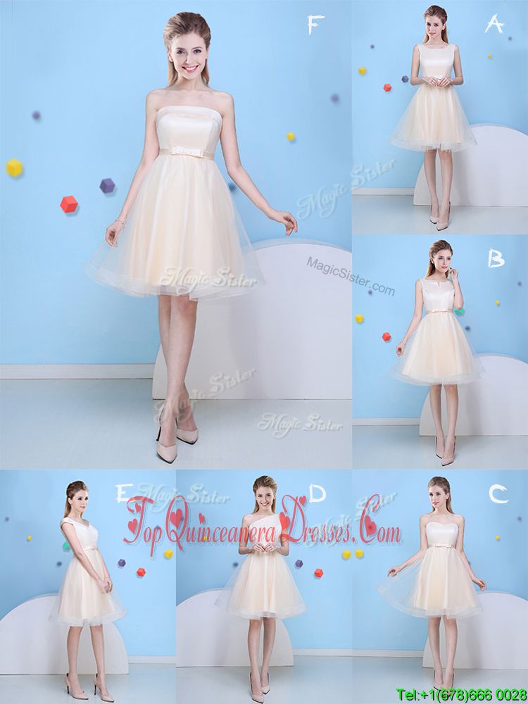 Champagne Sleeveless Bowknot Knee Length Quinceanera Dama Dress