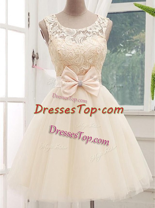 Champagne Sleeveless Knee Length Lace and Bowknot Lace Up Quinceanera Court of Honor Dress