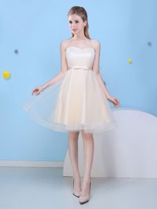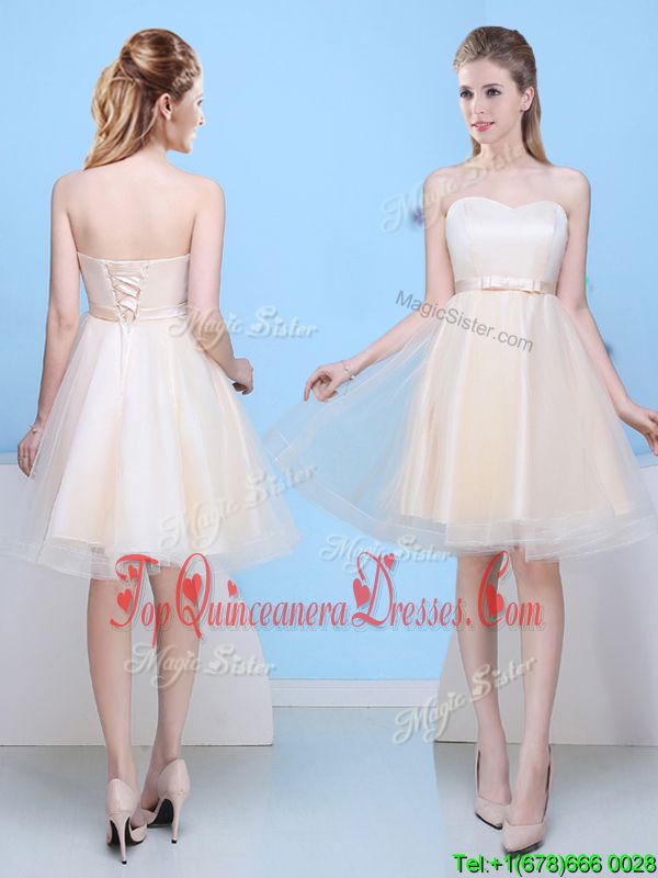 Champagne Sweetheart Lace Up Bowknot Quinceanera Court of Honor Dress Sleeveless