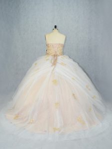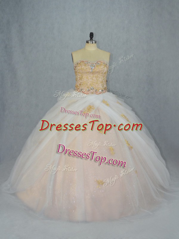 Champagne Sweetheart Neckline Beading and Appliques Sweet 16 Dresses Sleeveless Lace Up
