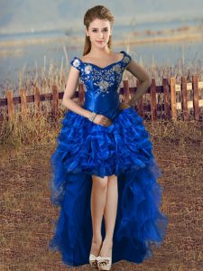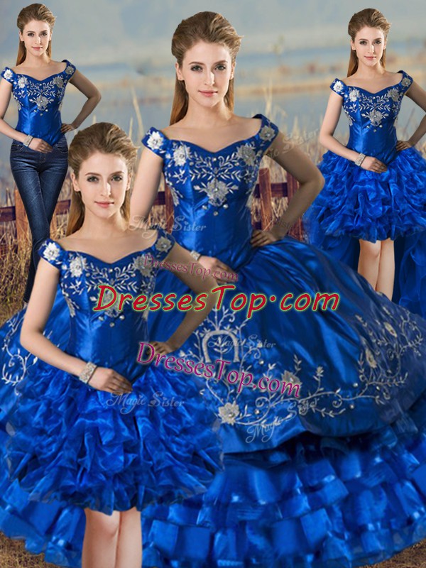 Charming Ball Gowns Quinceanera Gowns Royal Blue Off The Shoulder Satin and Organza Sleeveless Floor Length Lace Up