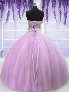 Charming Ball Gowns Sweet 16 Dress Lilac Sweetheart Tulle Sleeveless Floor Length Lace Up