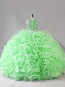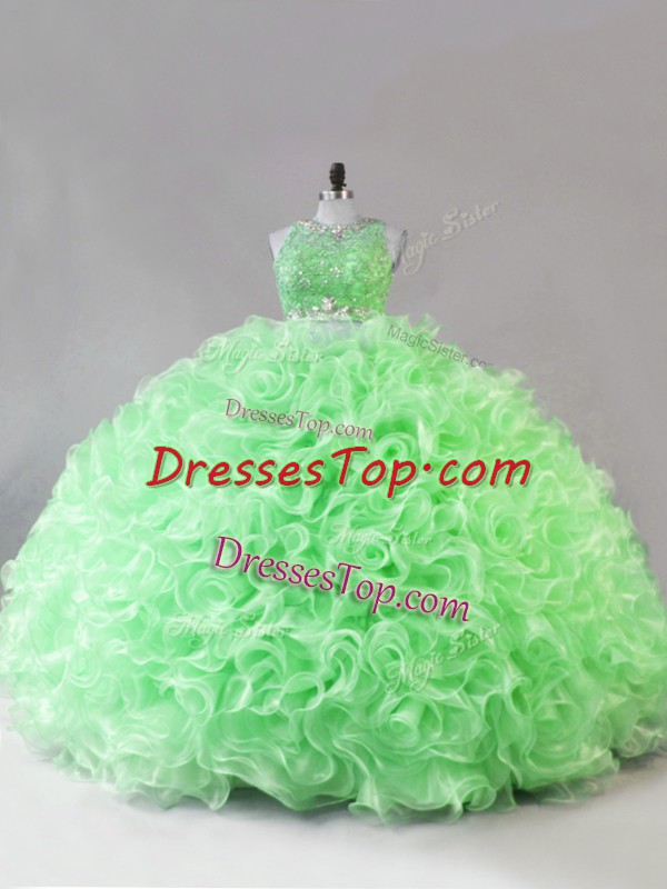 Charming Fabric With Rolling Flowers Zipper Sweet 16 Dresses Sleeveless Floor Length Beading