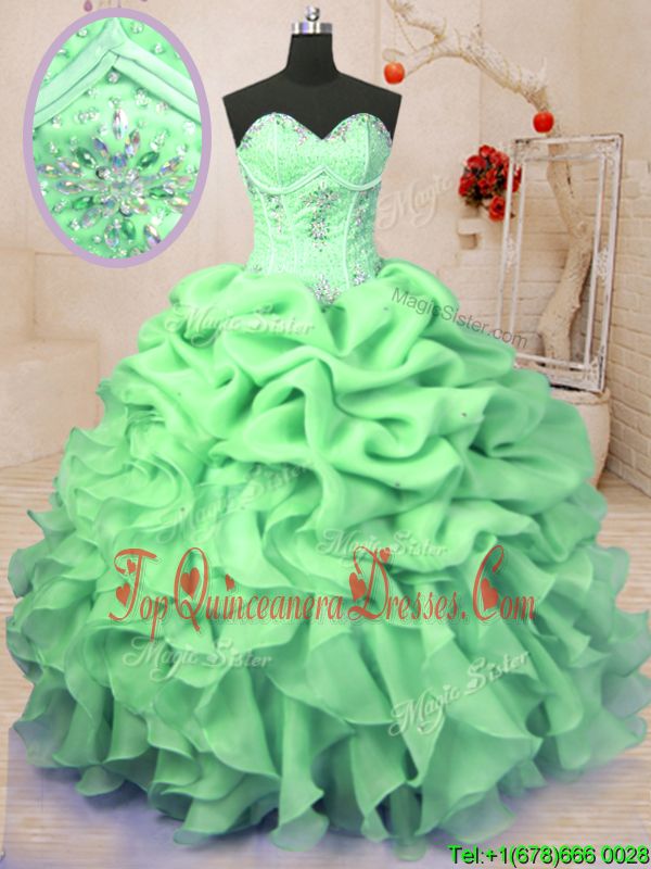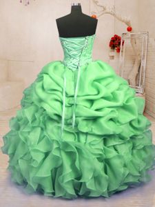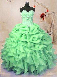 Charming Floor Length Sweet 16 Quinceanera Dress Organza Sleeveless Beading and Ruffles and Pick Ups