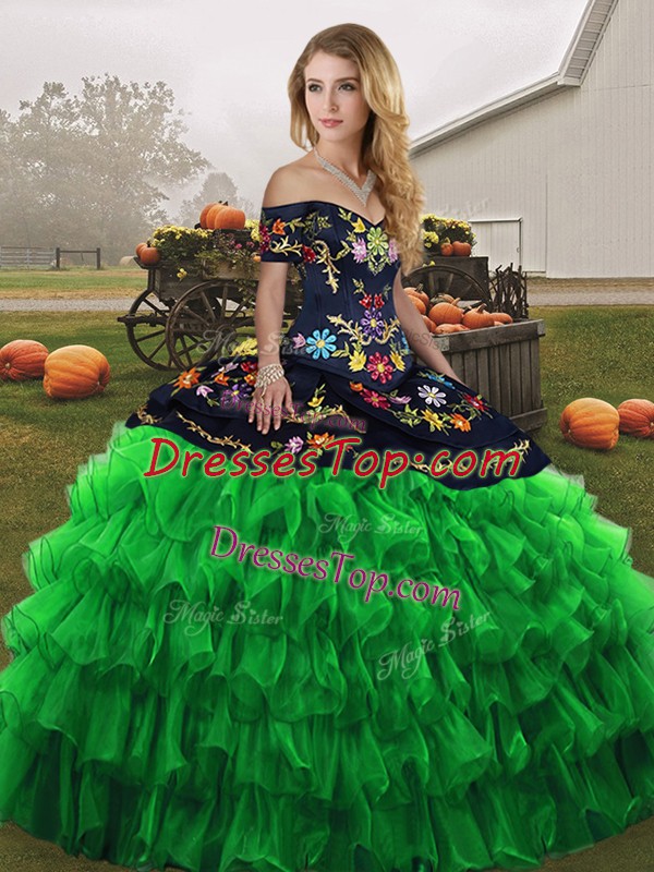 Charming Green Sleeveless Embroidery and Ruffled Layers Floor Length Ball Gown Prom Dress