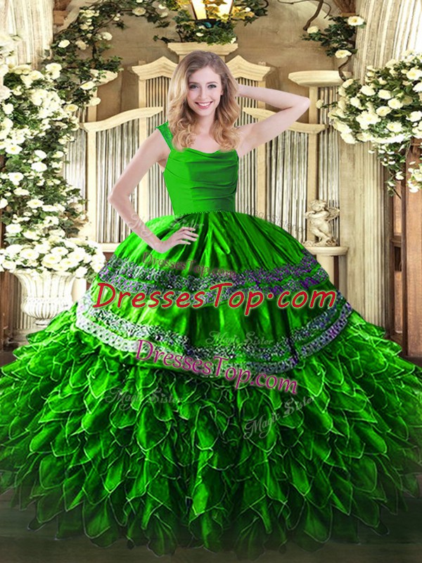 Charming Green Sleeveless Organza Zipper Quinceanera Gown for Sweet 16 and Quinceanera