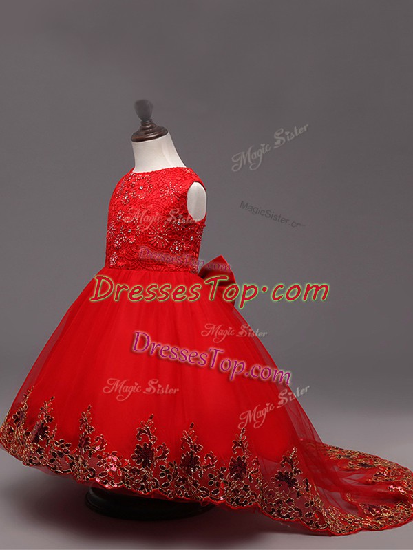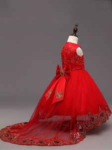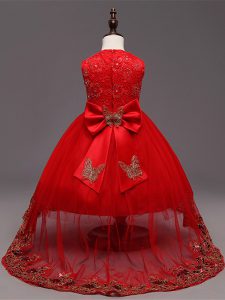 Charming High Low Red Little Girls Pageant Dress Wholesale Scoop Sleeveless Zipper