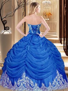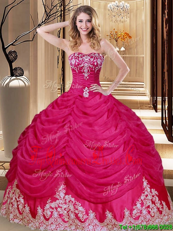 Charming Hot Pink Ball Gowns Appliques and Embroidery and Pick Ups Quince Ball Gowns Lace Up Tulle Sleeveless Floor Length