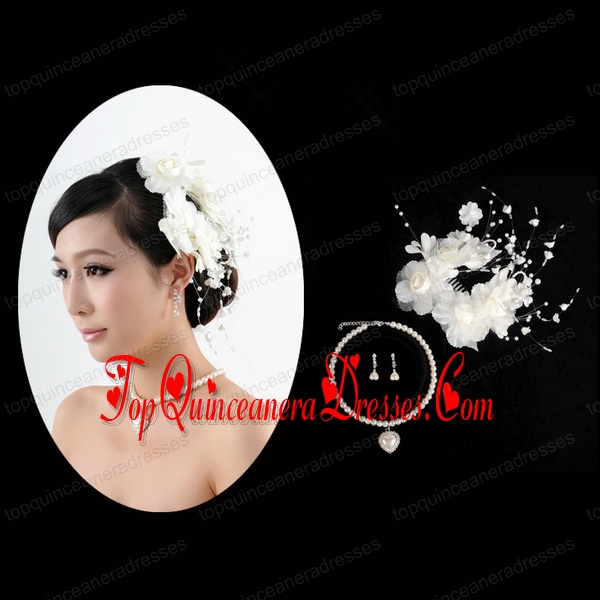 Charming Jewelry Set with Headpiece Immitation Pearl Necklace And Earrings