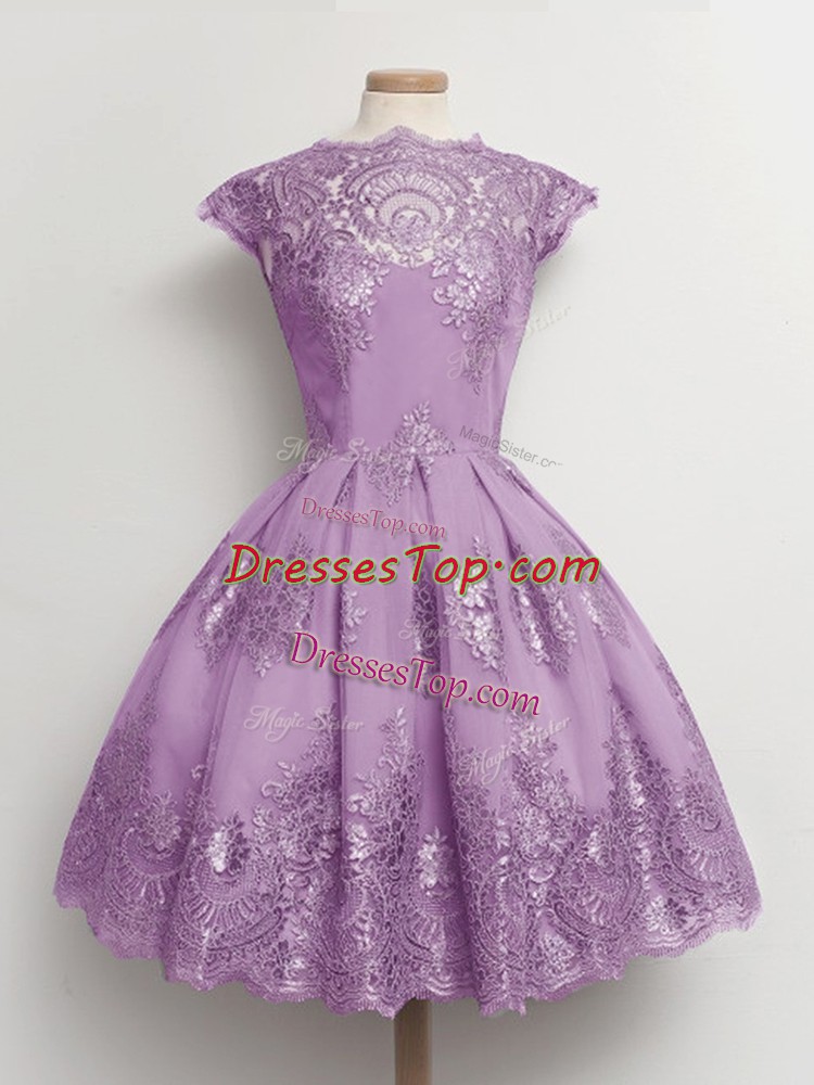 Charming Lace Damas Dress Lavender Lace Up Cap Sleeves Knee Length