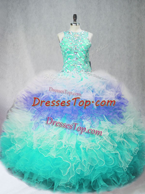 Charming Multi-color Quinceanera Dress Sweet 16 and Quinceanera with Beading and Ruffles Scoop Sleeveless Zipper