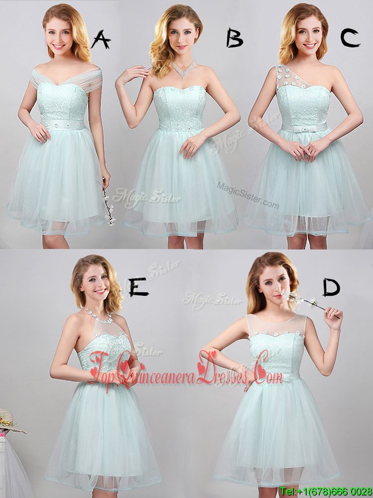 Charming Off The Shoulder Sleeveless Lace Up Vestidos de Damas Apple Green Tulle
