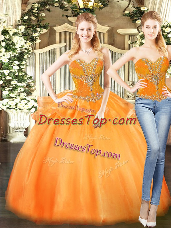 Charming Organza Sweetheart Sleeveless Lace Up Beading and Ruffles 15 Quinceanera Dress in Orange Red